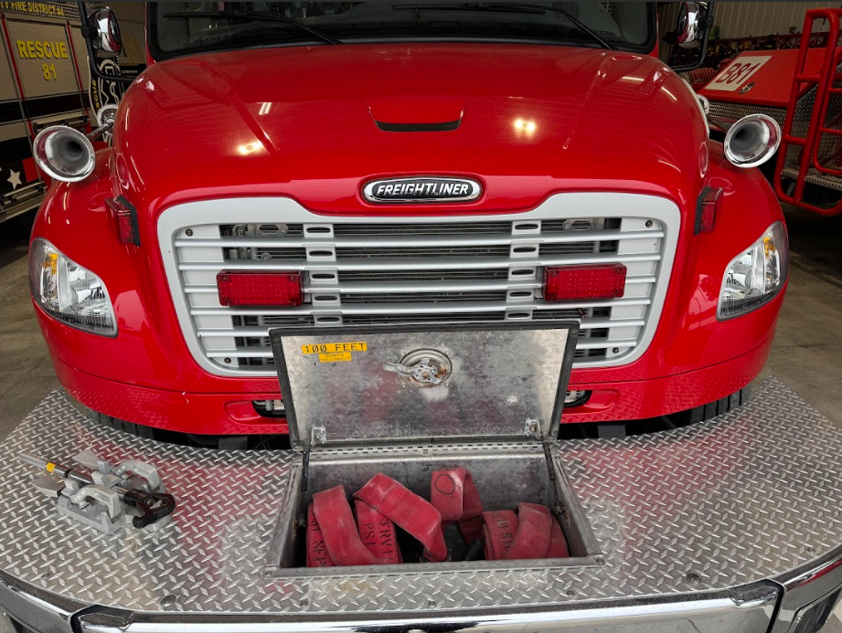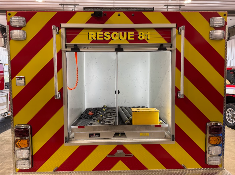 In addition to its EMS capabilities, Squad 81 features a 50-gallon slide-in low volume, high-pressure skid unit—ideal for grass fire mop-up and small-scale suppression. The truck also carries a selection of hand tools and smaller equipment, enhancing its versatility on scene.