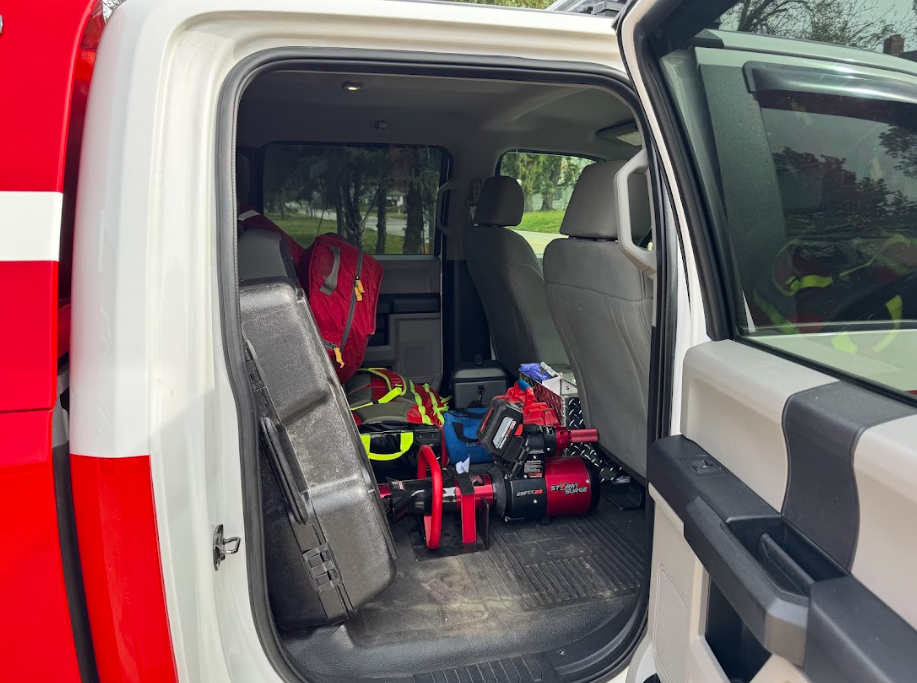 For firefighter safety and versatility, both units carry self-contained breathing apparatus (SCBA), forcible entry tools, and a variety of nozzles and hose appliances. Additionally, they are outfitted with basic medical bags and supplies to provide emergency care when needed.